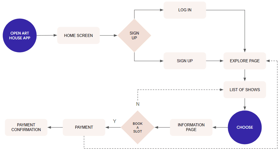 I worked on user flow diagrams and information architecture in the ideate phase of design thinking.